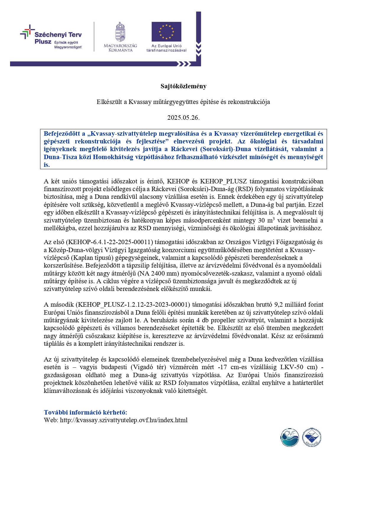 Kvassay-szivattyútelep megvalósítása és a Kvassay vízerőtelep energetikai és gépészeti rekonstrukciója és fejlesztése